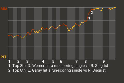 Danny Werner, who is tied for 5th in the ABC in RBI with 12, had a direct impact on the outcome. Werner contributed a run-scoring single in the top of the eighth inning to put Miami up, 2-0.